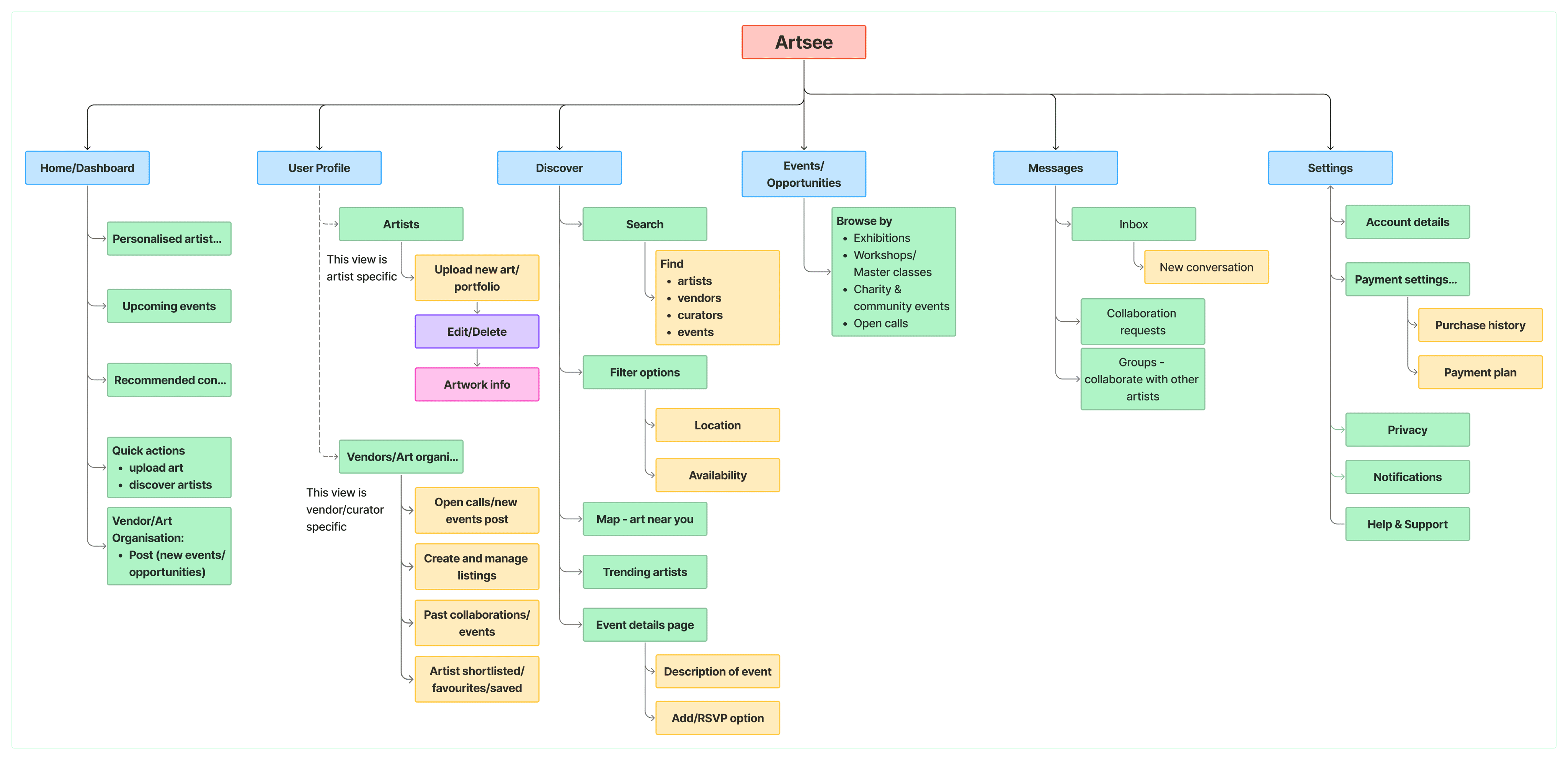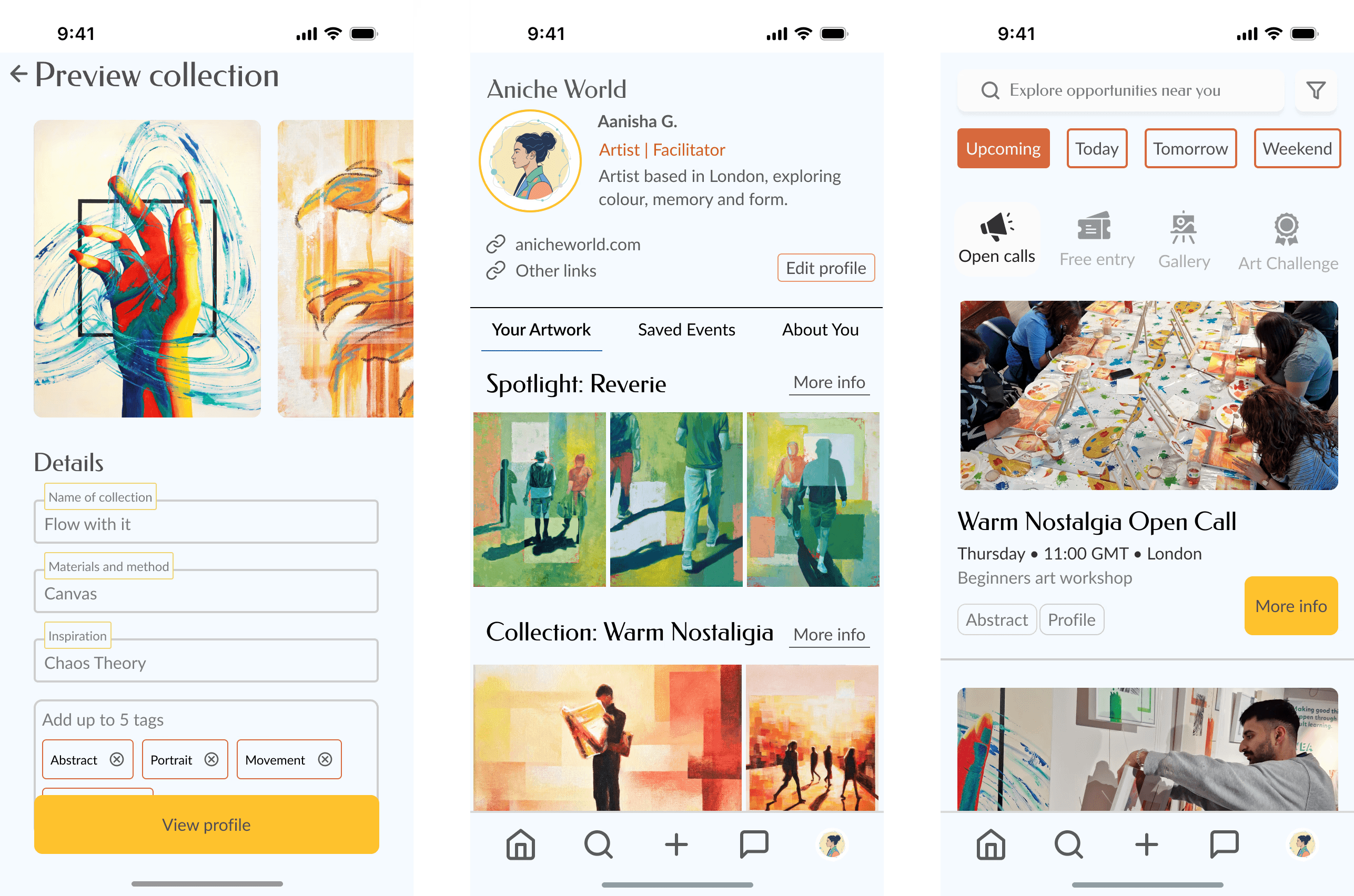 I also saw how important it was for artists to have easy access to organiser info and contact details. Beyond that, artwork presentation emerged as a real priority. I’d suspected it mattered, but testing confirmed it: artists wanted their work to take centre stage. That insight led me to create dedicated artwork preview pages, with context and inspiration built in.