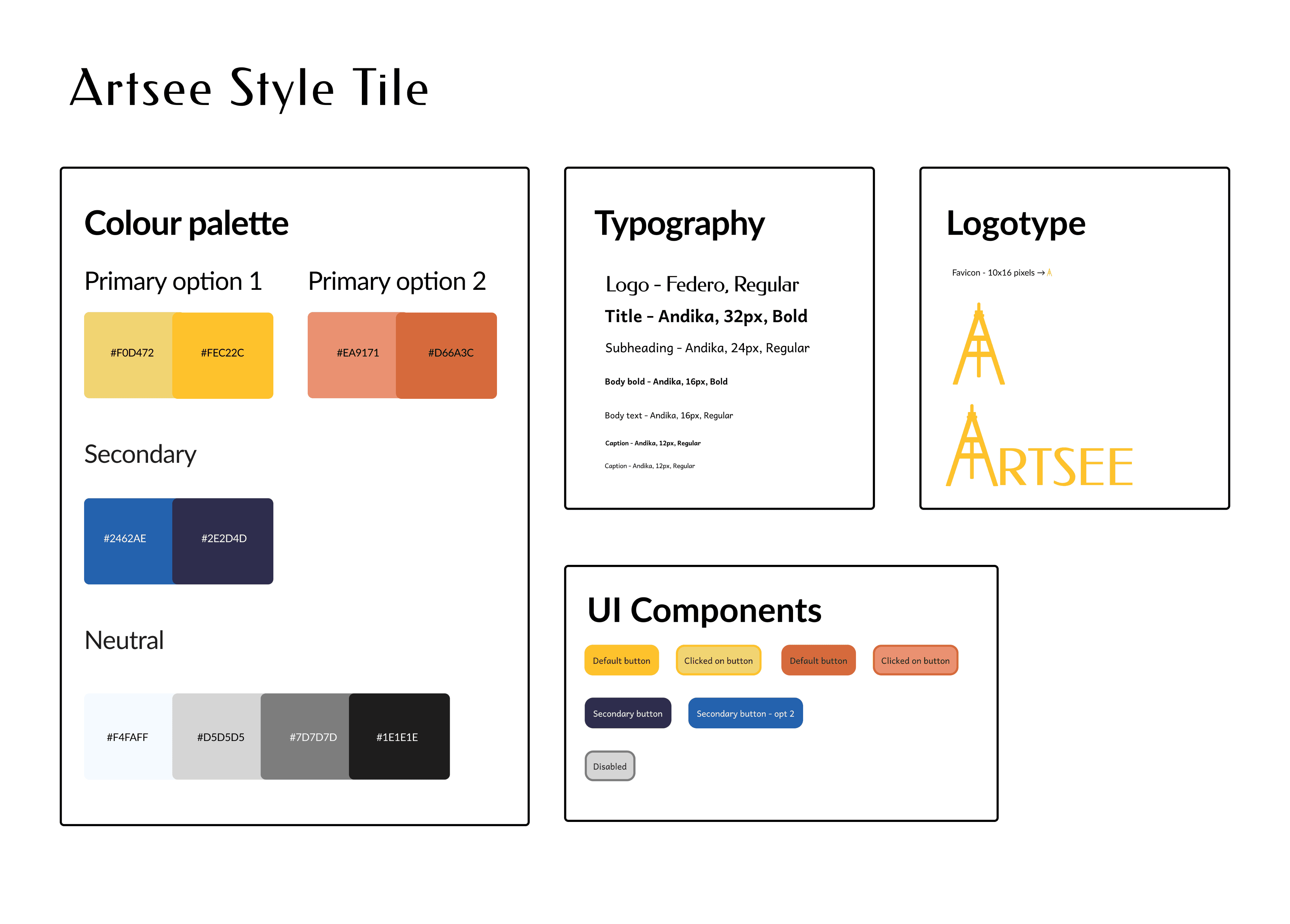 Tested options to see which colour palette would resonate better with Artists and shared options 1 and 2 as primary colours where option 1 was chosen.