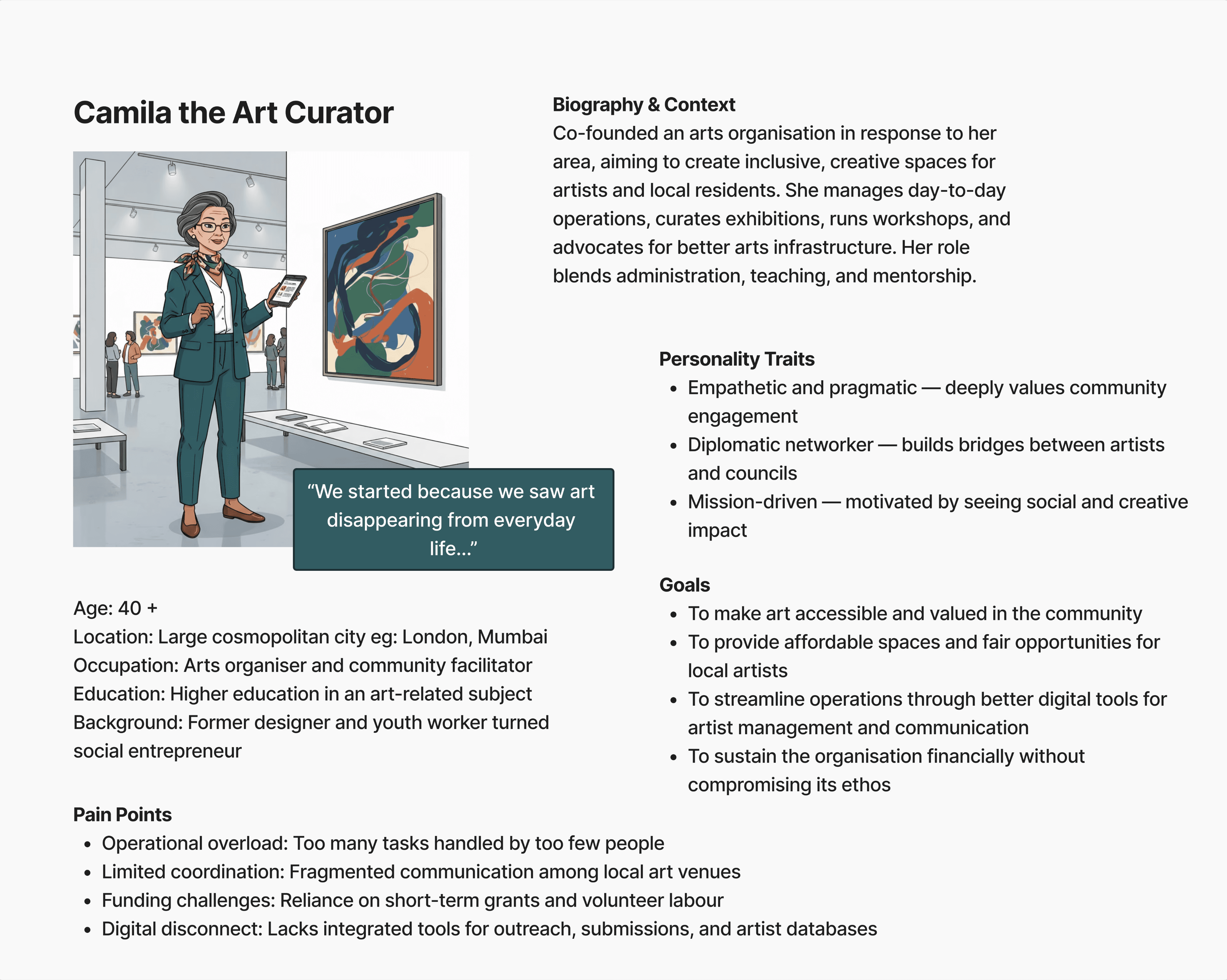 Desire to make art accessible and valued