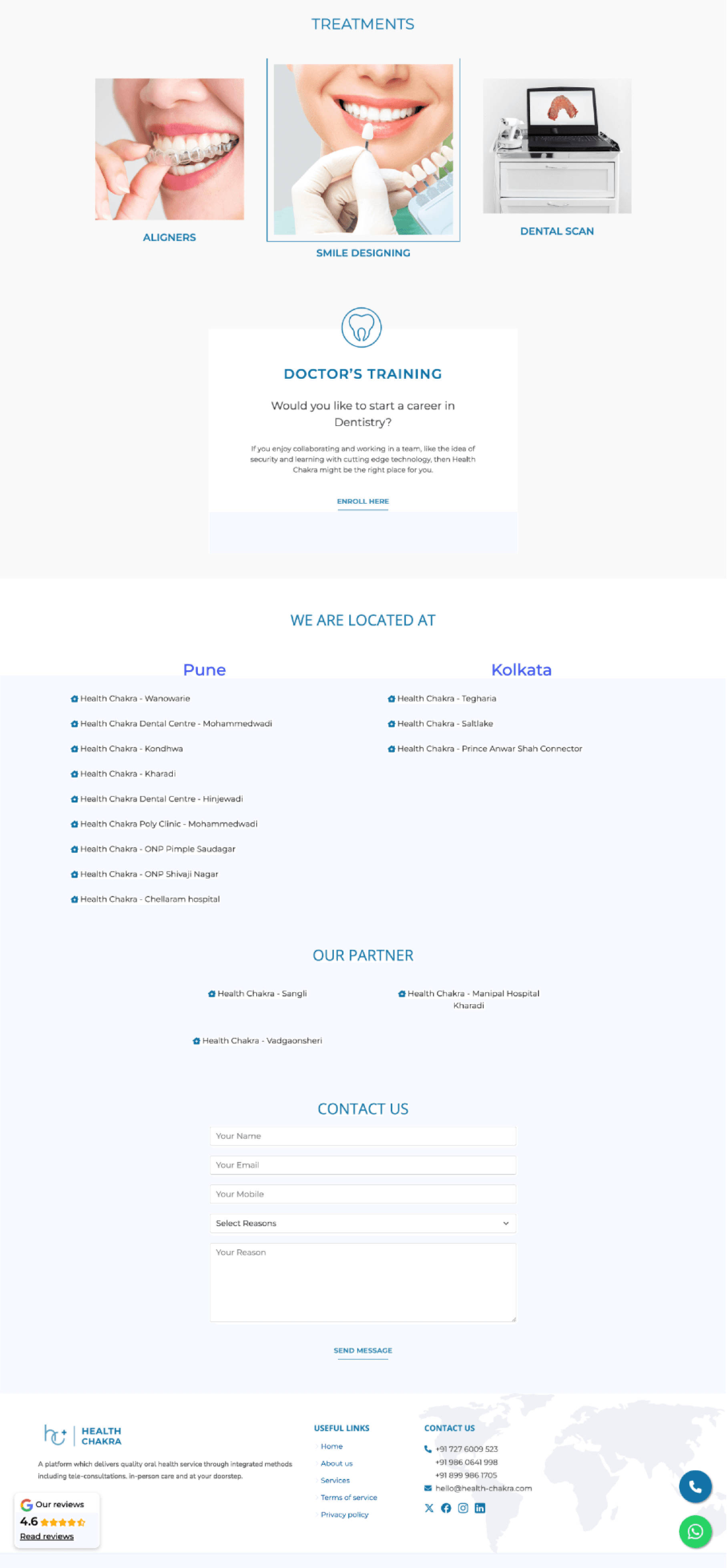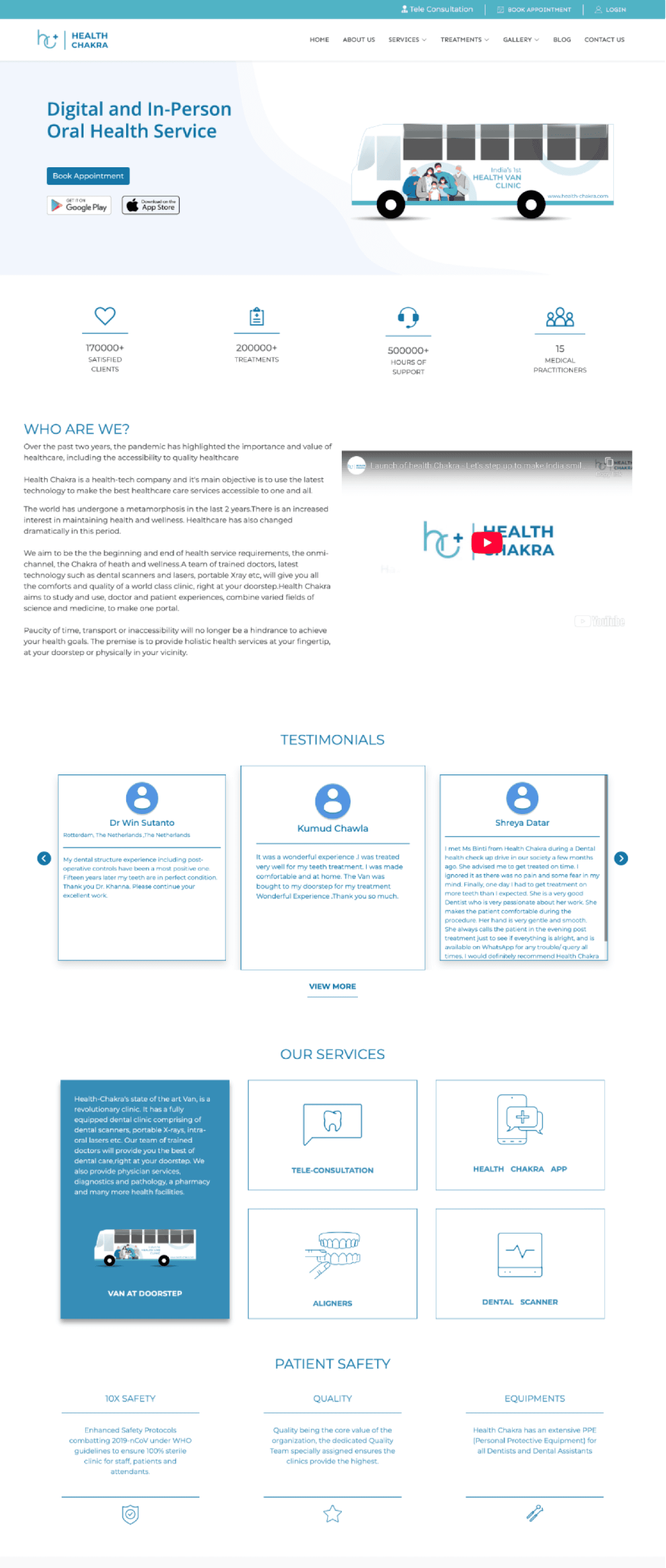 I worked on redesigning the website for Health Chakra Pvt Ltd, a startup digital and in-person oral health clinic in India. Even though the clinic already has a strong reputation in person, the current website felt a bit disjointed. The founder was particularly keen on updating the landing page, and the redesign overall aims to reflect the company’s updated structure, processes, and services.